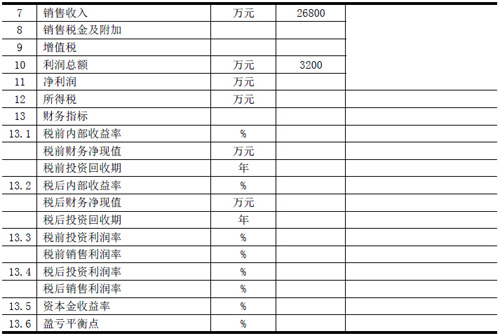 項目總投資3455.56 萬元人民幣,預(yù)計實現(xiàn)年產(chǎn)值26,800 萬元人民幣,年利稅總額達到3200 萬元。